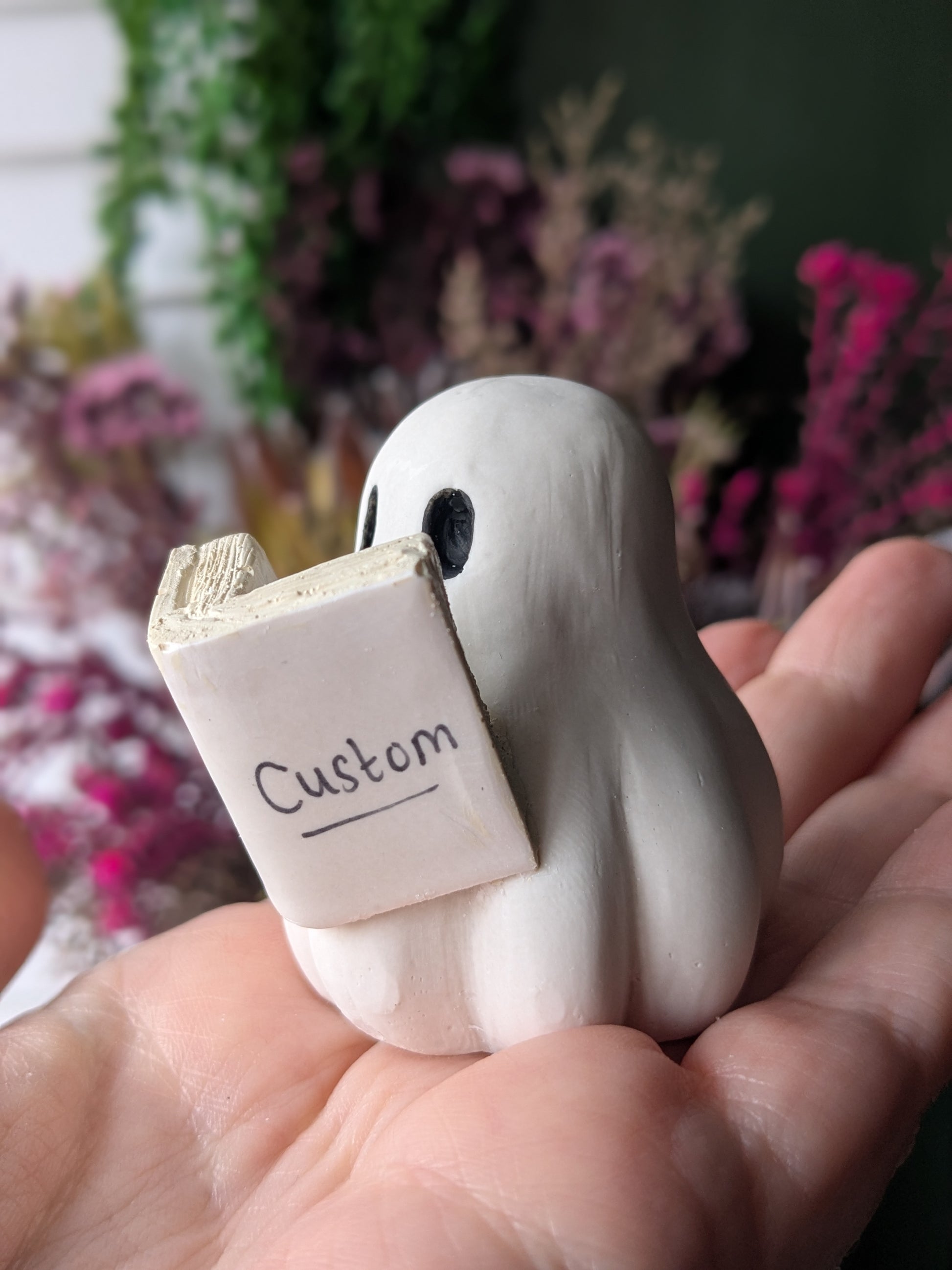 5.5cm tall, handmade and hand decorated collectable ghost figures. These little ghouls will make the perfect desk buddy, shelf spirit, bookshelf haunter or personal phantom!
