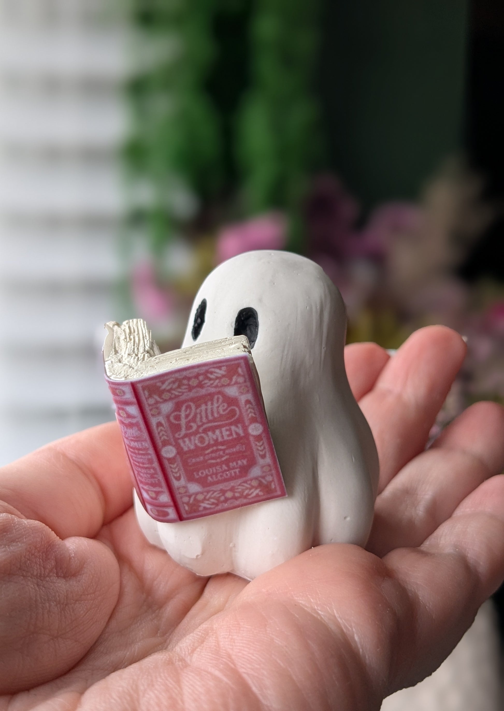 5.5cm tall, handmade and hand decorated collectable ghost figures. These little ghouls will make the perfect desk buddy, shelf spirit, bookshelf haunter or personal phantom!