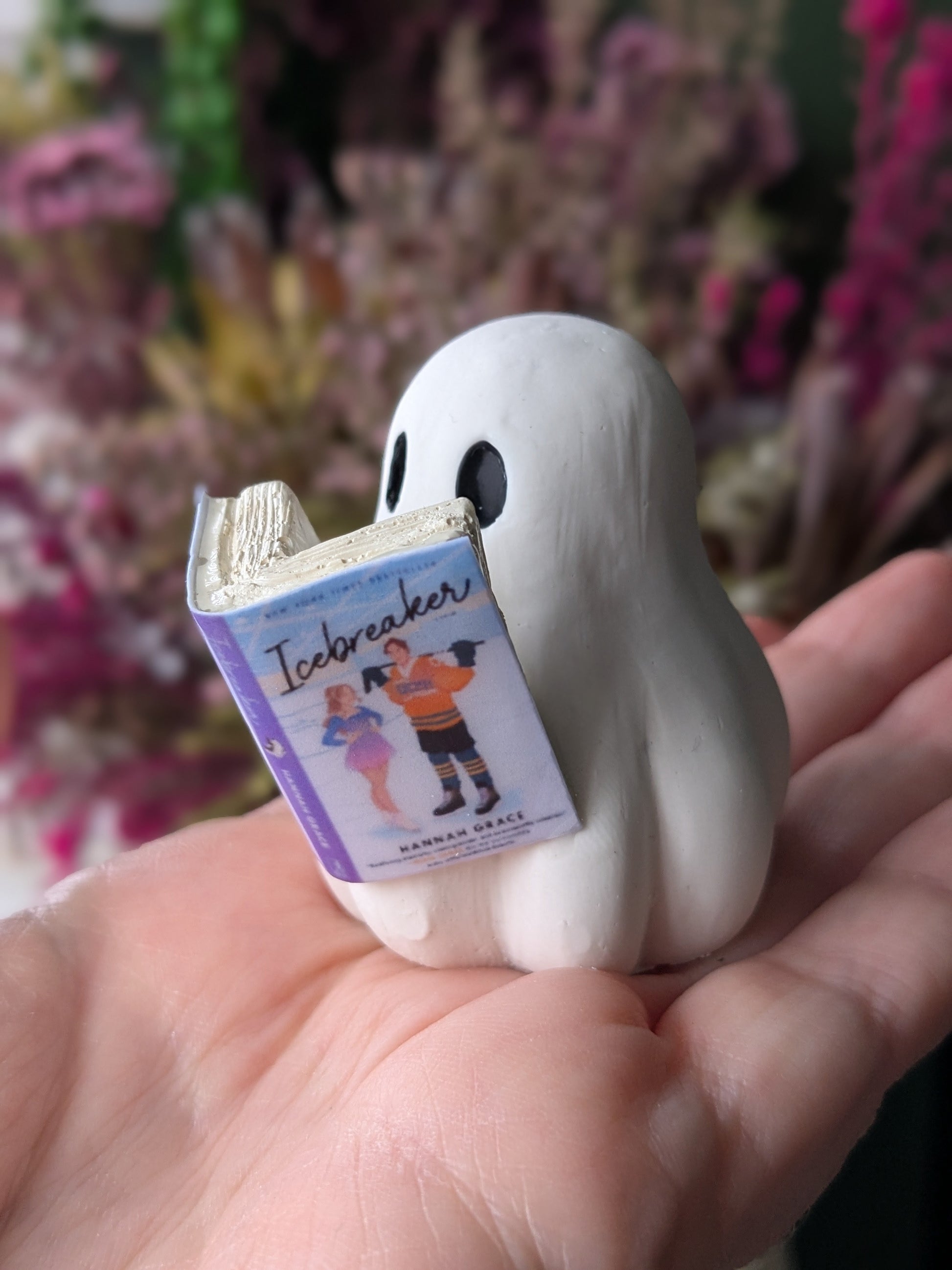 5.5cm tall, handmade and hand decorated collectable ghost figures. These little ghouls will make the perfect desk buddy, shelf spirit, bookshelf haunter or personal phantom!