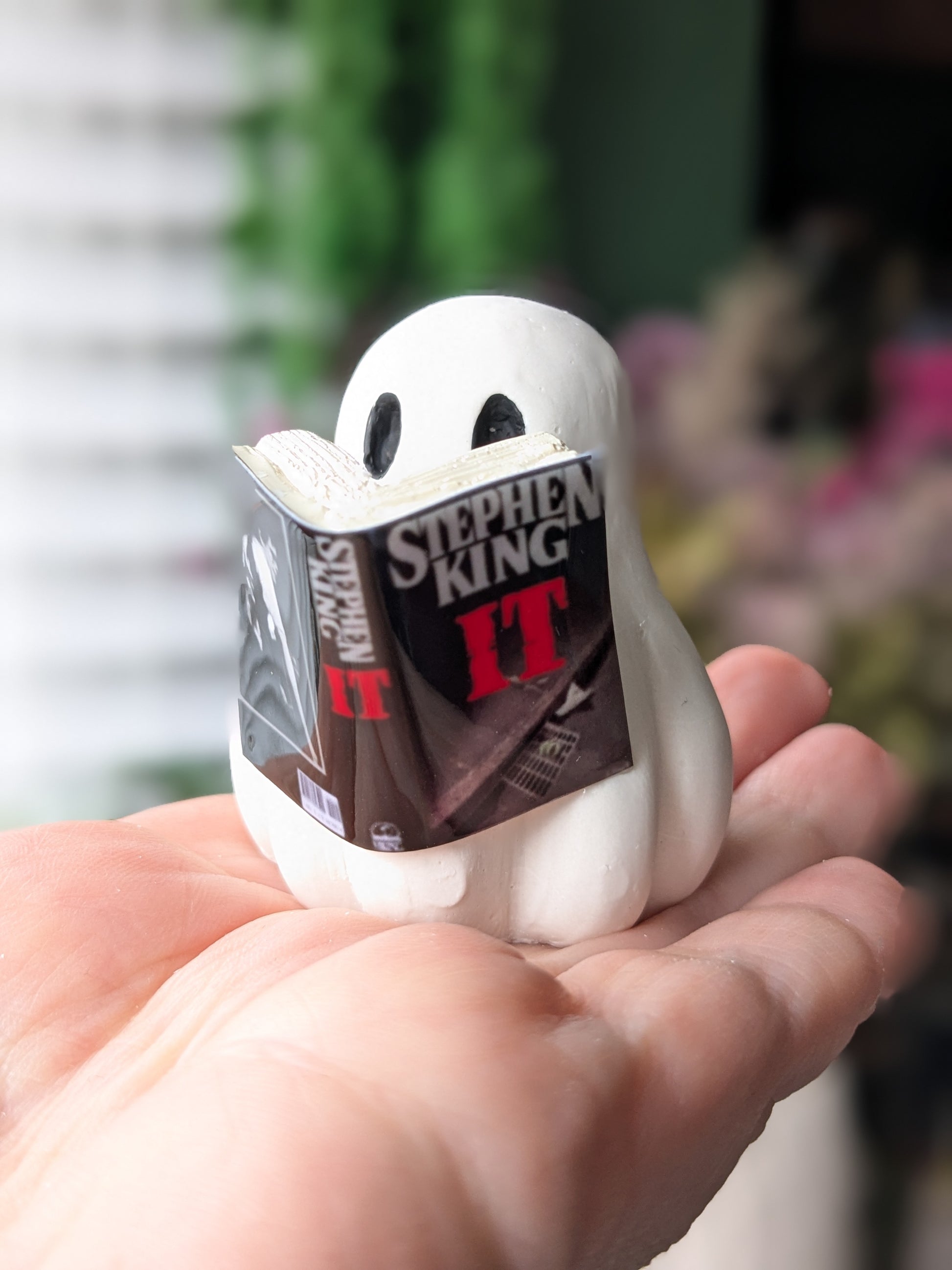 5.5cm tall, handmade and hand decorated collectable ghost figures. These little ghouls will make the perfect desk buddy, shelf spirit, bookshelf haunter or personal phantom!