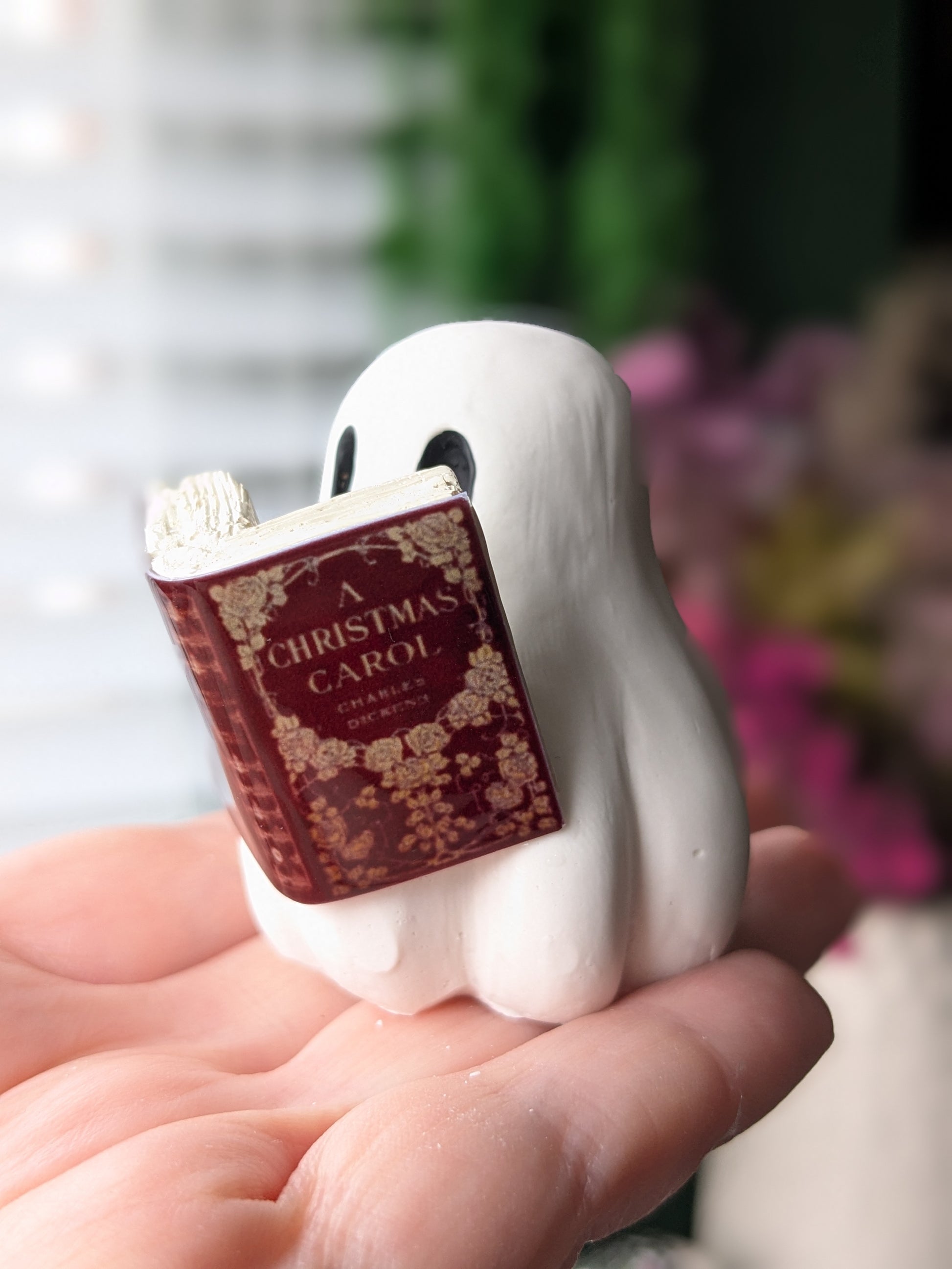 5.5cm tall, handmade and hand decorated collectable ghost figures. These little ghouls will make the perfect desk buddy, shelf spirit, bookshelf haunter or personal phantom!