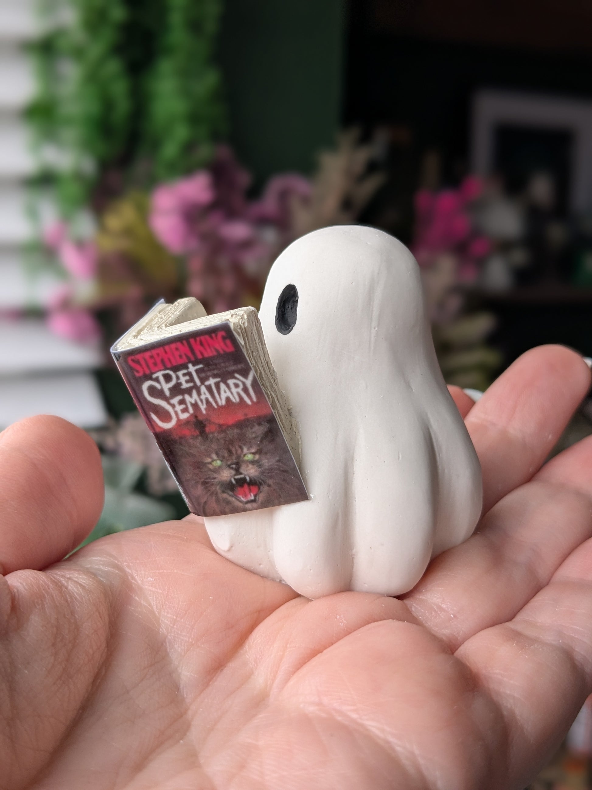 5.5cm tall, handmade and hand decorated collectable ghost figures. These little ghouls will make the perfect desk buddy, shelf spirit, bookshelf haunter or personal phantom!