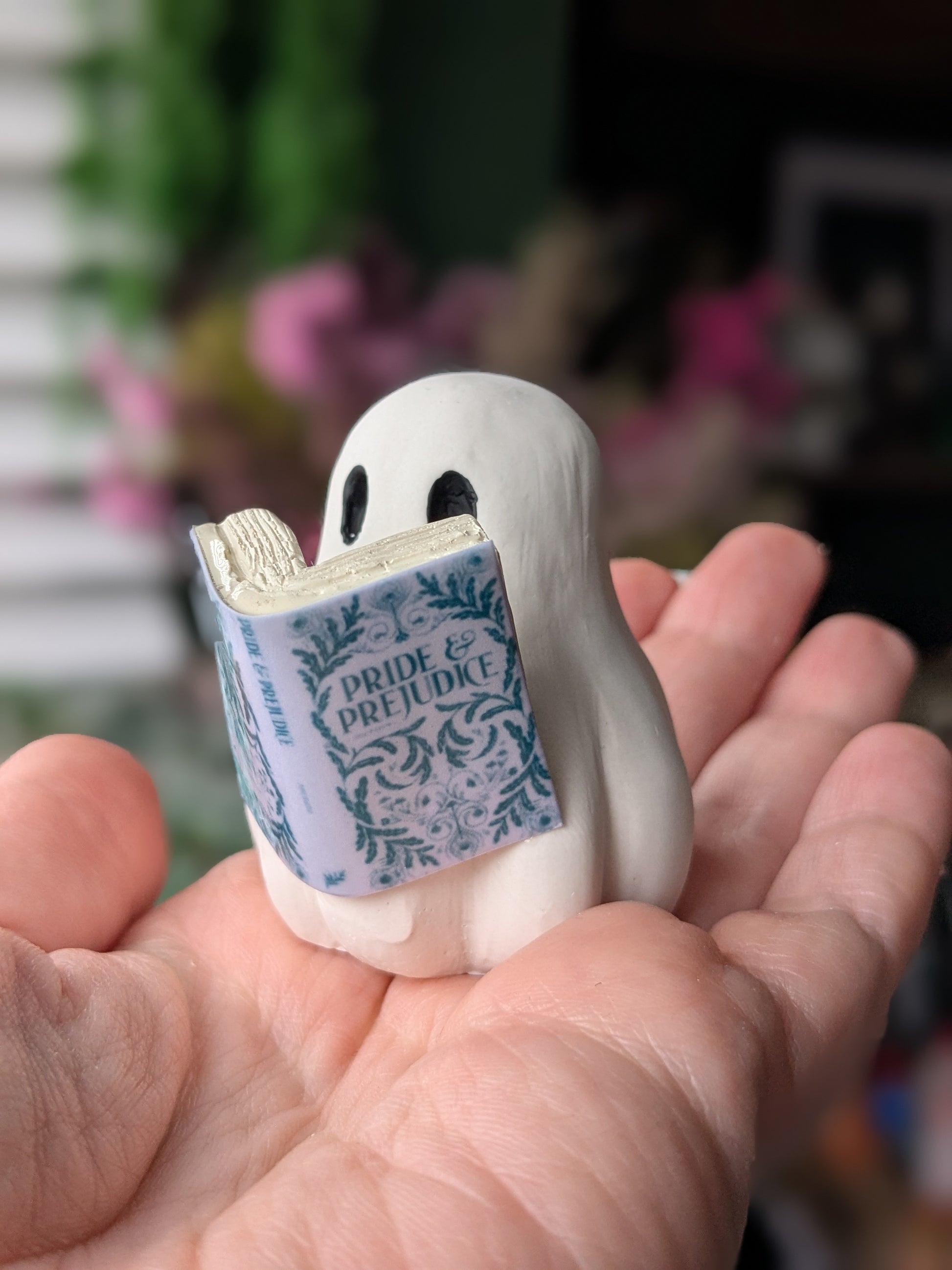5.5cm tall, handmade and hand decorated collectable ghost figures. These little ghouls will make the perfect desk buddy, shelf spirit, bookshelf haunter or personal phantom!