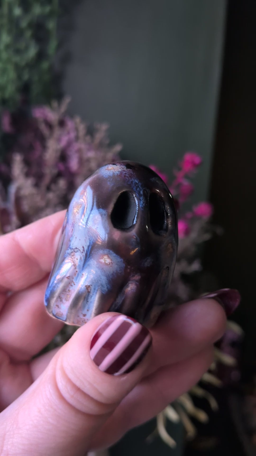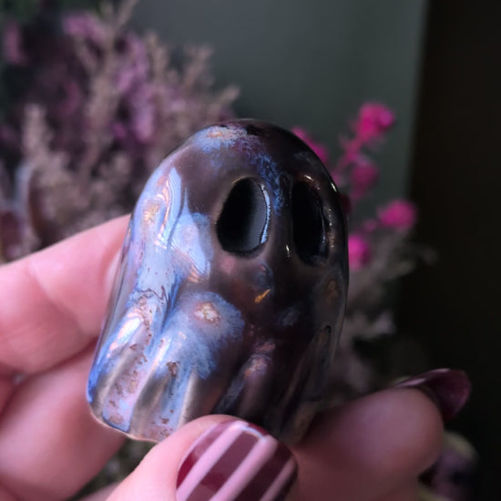 Their glossy, armour-like cloaks melt and swirl in unpredictable patterns, making every Starforge Ghost completely one of a kind. They feel right at home on bookshelves, altars, workspaces or anywhere that needs a spark of celestial mystery.